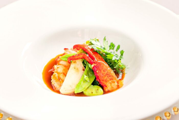 ロティしたオマール海老を合わせたスープ仕立ての一品》