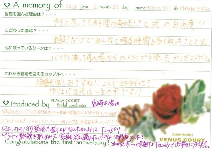2025年2月に挙式をされたファミリーがファーストアニバーサリーにお帰り頂きました!