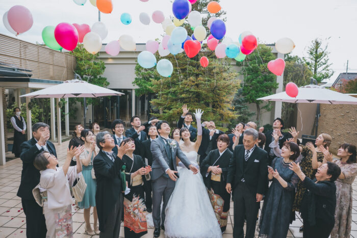 そして、挙式後にはこの場にいる全員の幸せを願ってお庭でのバルーンリリースを🎈