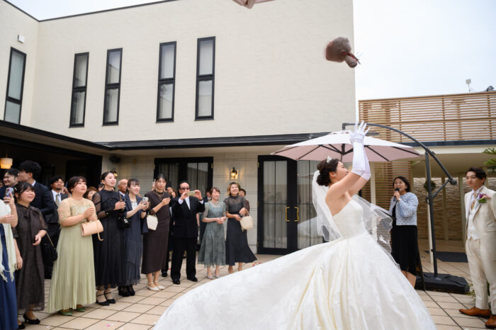 そして挙式の後のお庭のセレモニーではブーケトスを💐