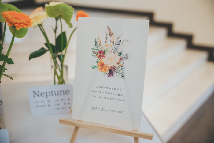 テーブルごとにお好きなお花を取っていただき、会場に彩りを加えていただくフラワービュッフェを行いました♡