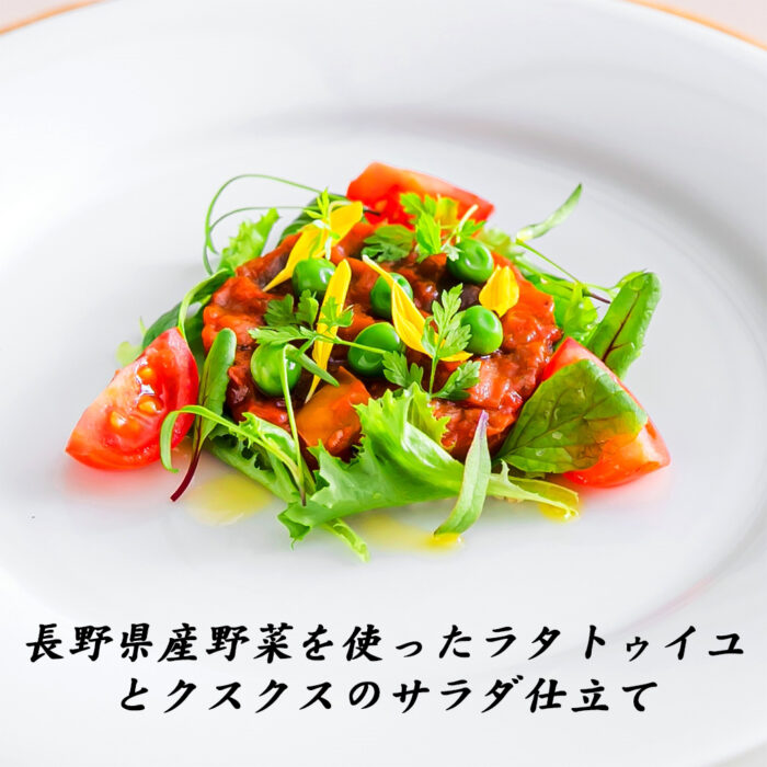 お魚は+700円で【信州サーモンのポワレ】に変更可能。