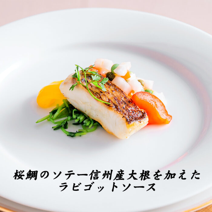 お魚は+700円で【信州サーモンのポワレ】に変更可能。