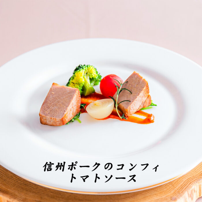 お魚は+700円で【信州サーモンのポワレ】に変更可能。