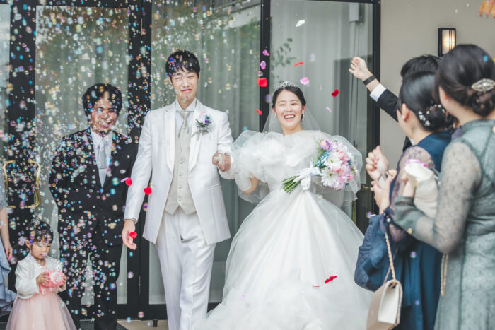 シャボン玉とフラワーシャワーでおふたりをお出迎え🌼