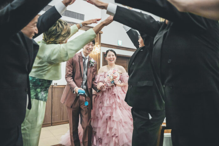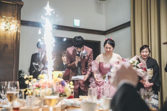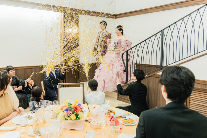 お色直し入場ではたくさんのクラッカーを浴びてご入場されました🎉