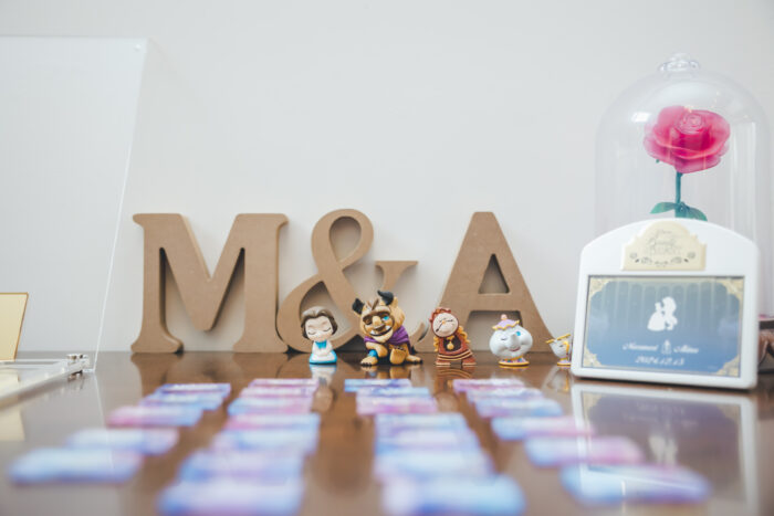 ディズニーがお好きなお二人はウェルカムスペースも美女と野獣のアイテムをたくさん飾っておりました🌹