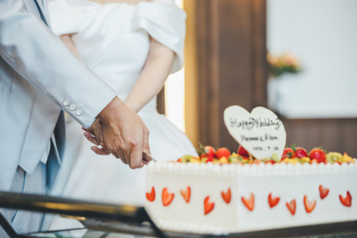 披露宴ではフルーツいっぱいのオリジナルケーキに入刀をしていただきました🍰