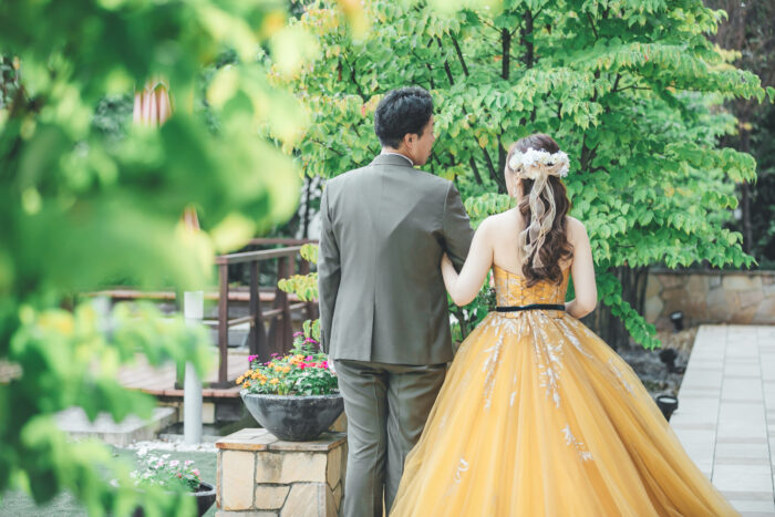 パーティー入場は緑のガーデンから