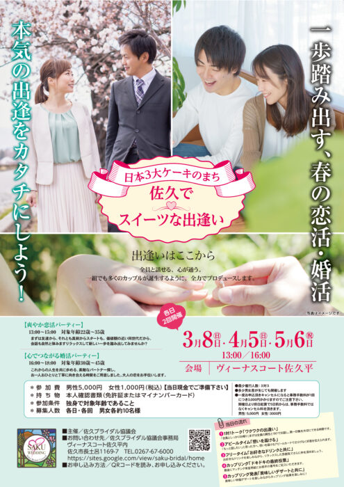 《佐久にもっと出逢いを!》3月8日婚活パーティー開催決定❣ 主催:佐久ブライダル協議会