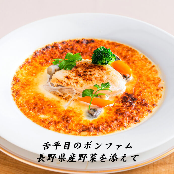 お魚は+700円で【信州サーモンのポワレ】に変更可能。