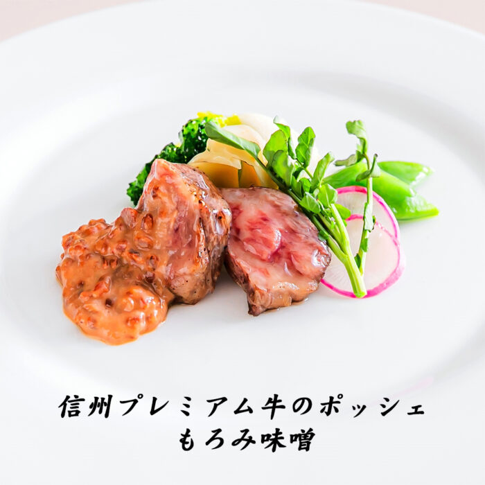 お肉は+800円で【信州プレミアム牛のランプステーキ】に変更可能。